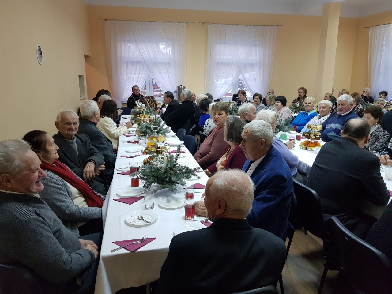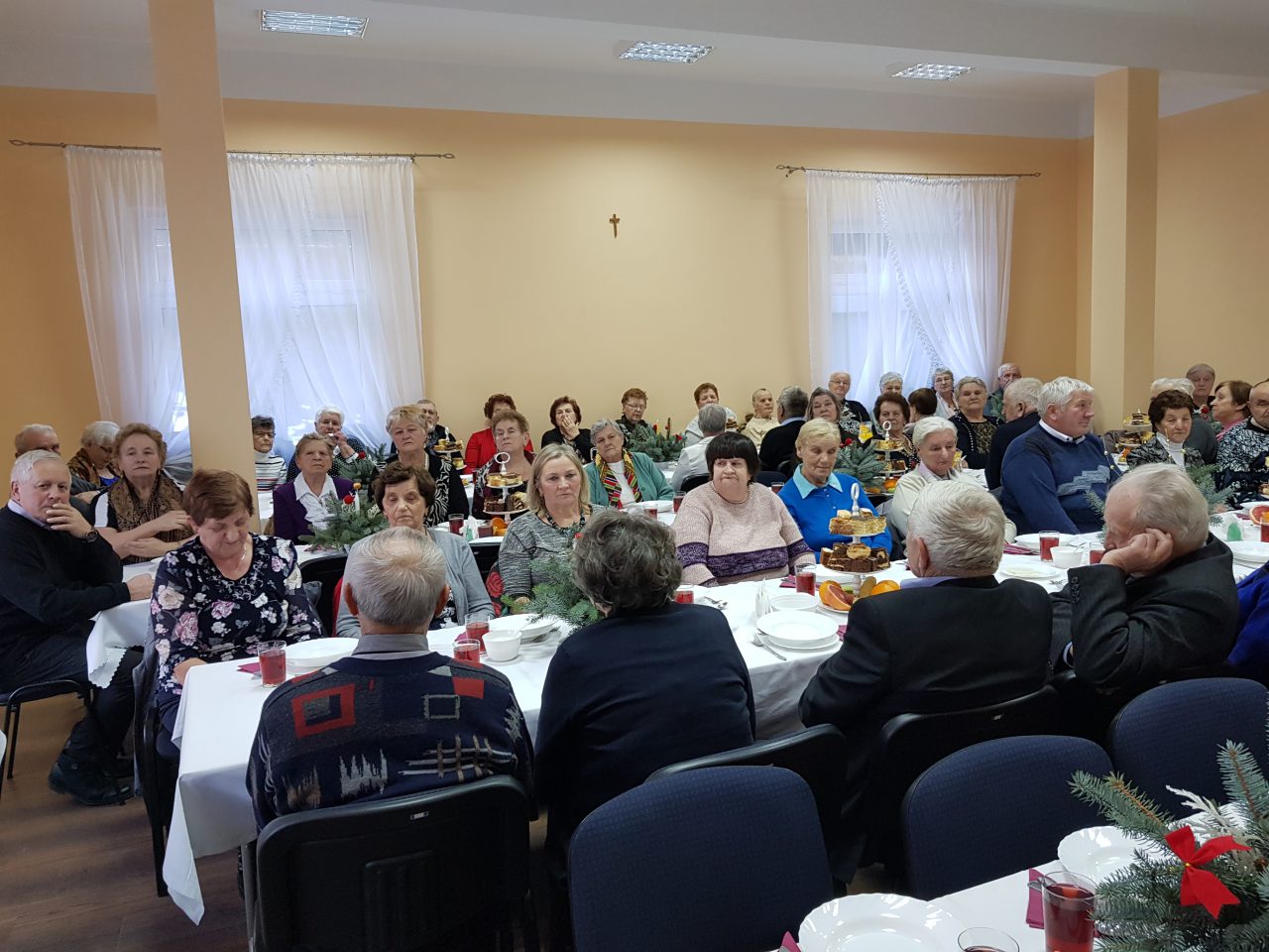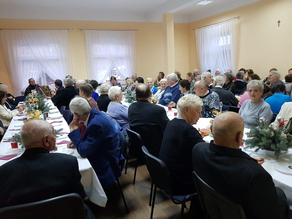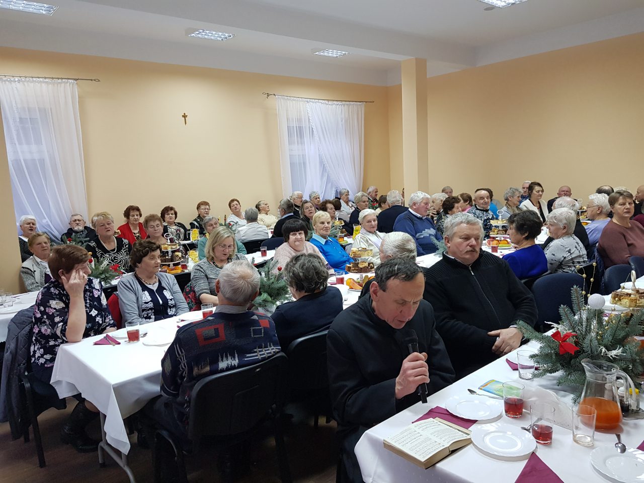 Spotkanie dla seniorów stało się okazją, aby spędzić razem czas wspólnie śpiewając kolędy i pastorałki przy akompaniamencie muzycznym pana Janusza Opara, rozmawiając i ciesząc się sobą we wspólnocie wzajemnej życzliwości. Wielość i różnorodność wspaniałych potraw serwowanych przez panie z Akcji Katolickiej w czasie spotkania opłatkowego była imponująca i budziła szczerą wdzięczność za trud włożonej pracy w ich przygotowanie. W spotkaniu opłatkowym wzięło udział ponad 80 osób, którym bardzo dziękujemy za przybycie, wspólną modlitwę i świętowanie.