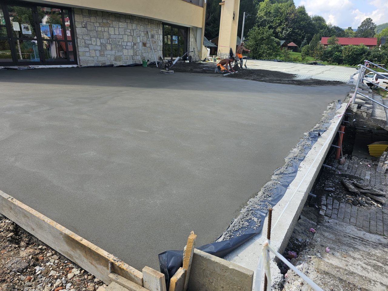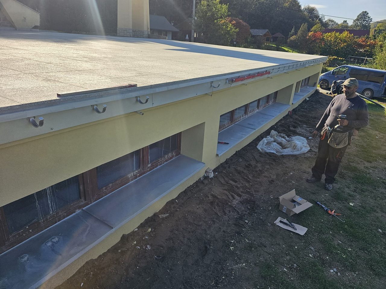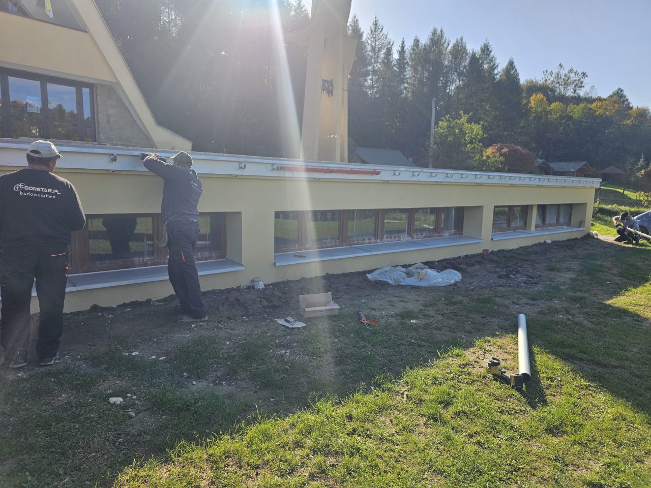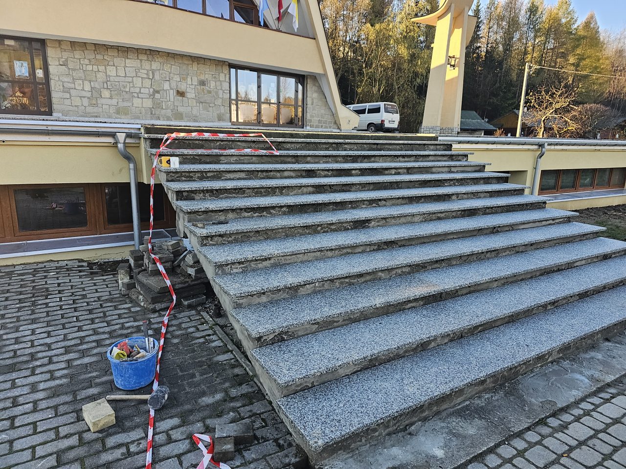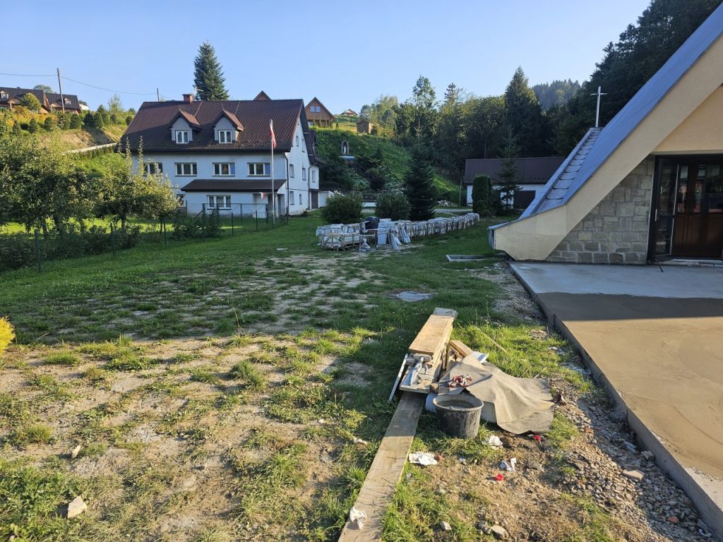 Zgodnie z zapowiedzią od połowy lipca zostały podjęte prace remontowe przy tarasie i głównych schodach do naszej świątyni. Ponieważ taras i główne schody są odsłonięte, a przez to są poddane na działania atmosferyczne: wody deszczowej, słońca, mrozu, co sprawiło, że wiele elementów straciło swoją trwałą przyczepność z podłożem, stwarzając niebezpieczeństwo podczas chodzenia. Dodatkowo powodowały nieestetyczny wizerunek głównego wejścia do naszej świątyni. Taki stan rzeczy wymagał podjęcia przed zimą koniecznego remontu. Dokonano najpierw demontażu zniszczonej odkrytej części schodów i murów bocznych co pokazało bardzo zły stan schodów i murów w swojej strukturze betonowej, która była już bardzo mocno skruszała i równocześnie mocno zawilgocona. Dokonano skucia zniszczonego materiału do trwałych powierzchni, uzupełnienia nową substancją do odtworzenia pełnej formy wszystkich elementów. Została wykonana izolacja przeciwwilgociowa dla odcięcia wilgoci z gruntu oraz hydroizolacja z zastosowaniem odpowiednich preparatów.