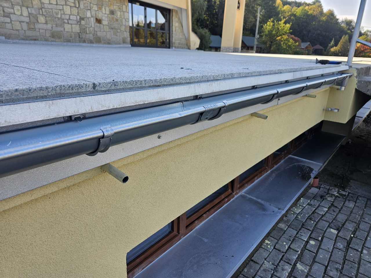 Odtworzono zniszczoną powierzchnie tarasu oraz stopnie głównych schodów, całość została wykonana z granitu szarego, zgodnie z programem prac. Skorodowane balustrad zostały zdemontowane i wymienione na nowe. Efekty prac można już częściowo podziwiać.
