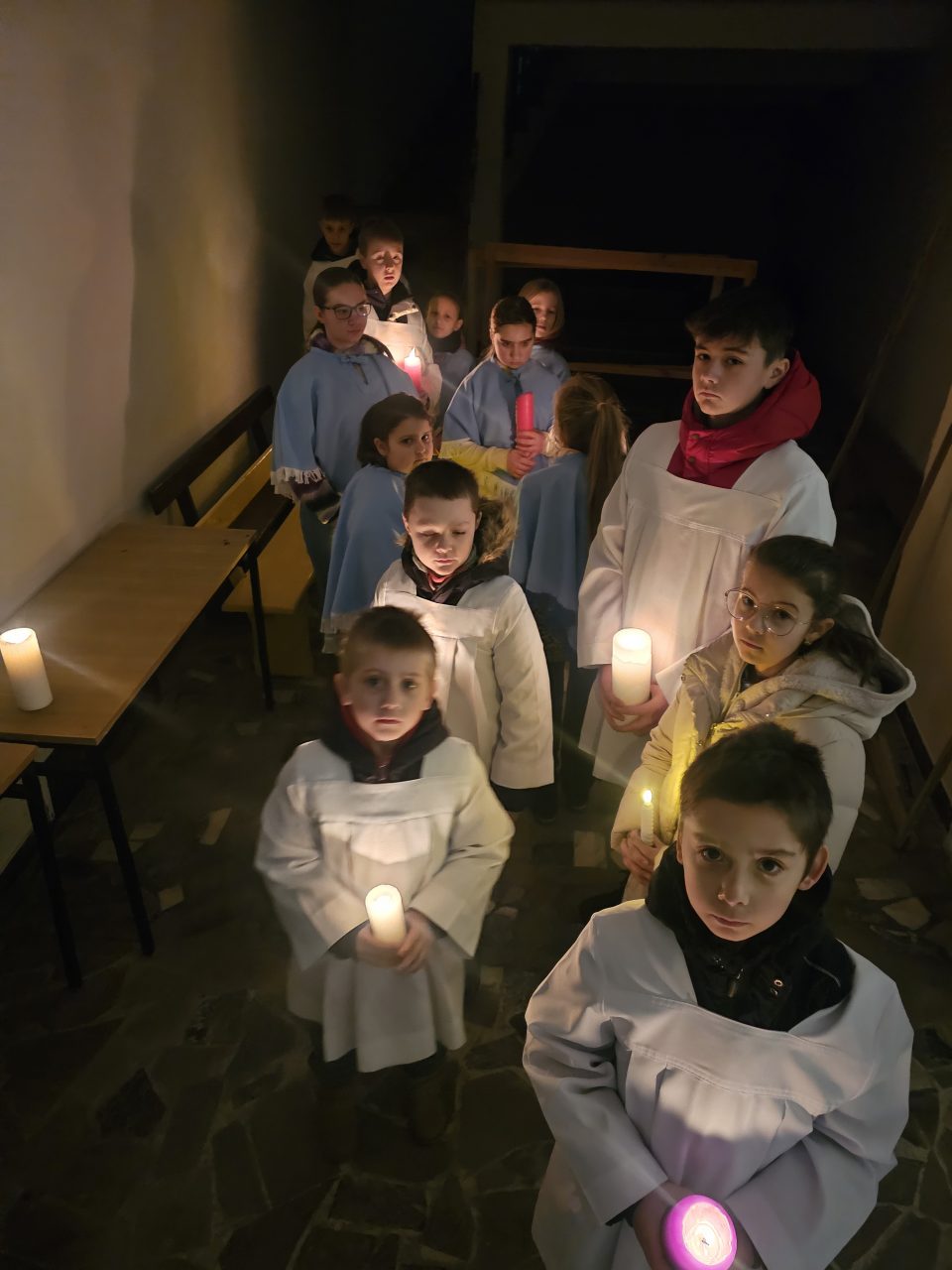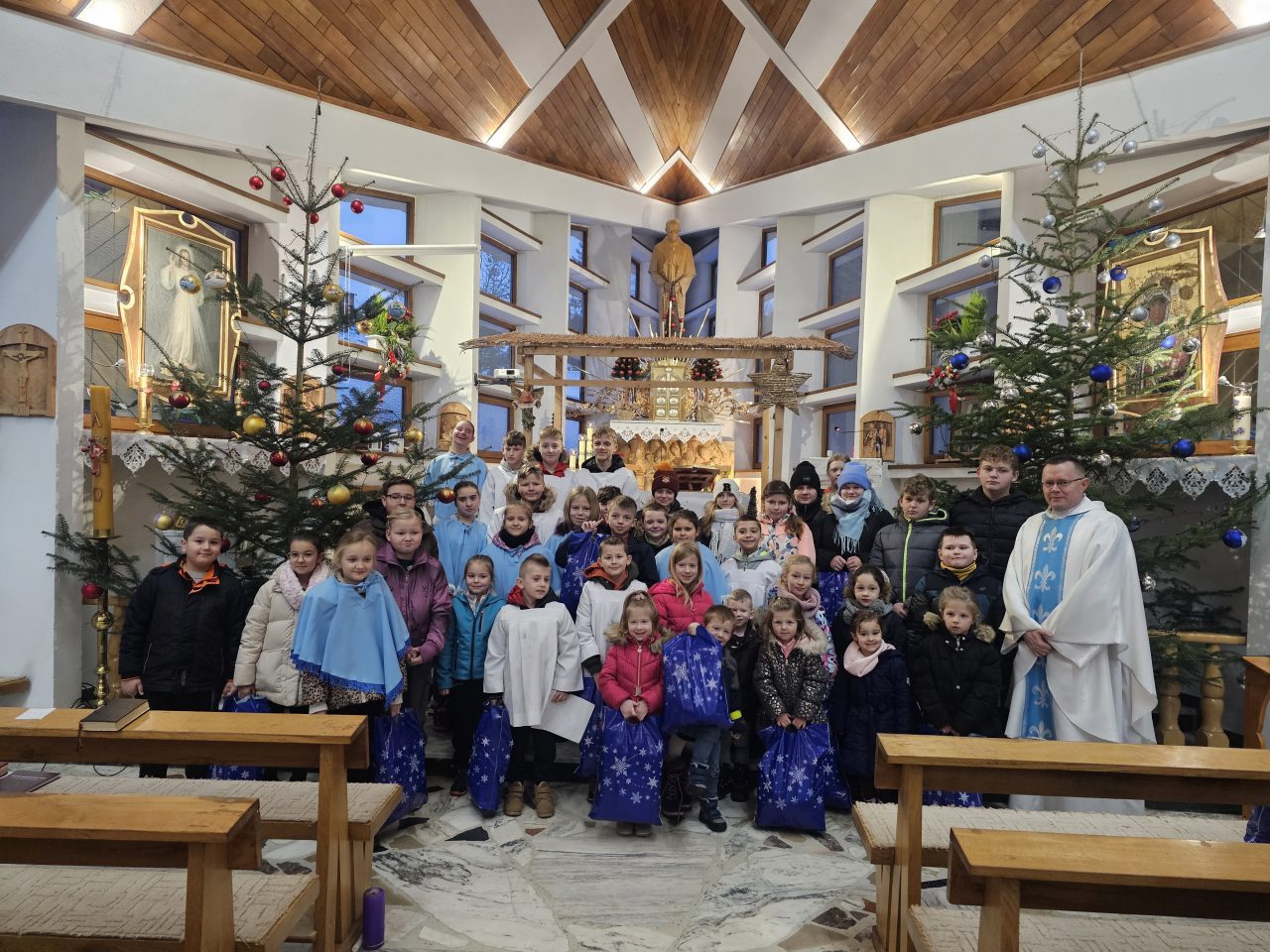 W grudniu 2023 roku na Roratach budowaliśmy w naszych sercach stajenkę dla Dzieciątka Jezus. Pomagał nam w tym św. Franciszek, który 800 lat temu pierwszy zbudował stajenkę w miejscowości Greccio we Włoszech. W czasie roratnich kazań przedstawiana była postać budowniczego stajenki i najważniejsze epizody z jego życia. Dzieciom tworzącym w swoich sercach miejsce dla Jezusa będzie towarzyszyła piosenka : „Cuda dzieją się …” i jak widać … rzeczywiście się działo …